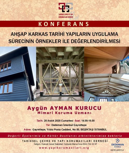 AHŞAP KARKAS TARİHİ YAPILARIN UYGULAMA SÜRECİNİN ÖRNEKLER İLE DEĞERLENDİRİLMESİ ![]() Konferansta, ahşap karkas tarihi yapıların korunmasına ilişkin ilkeler, uygulama süreçleri ve sahaadaki deneyimler örnekler üzerinden ele alındı. Kıymetli konuşmacımıza, derneğimizin kültürel ve mesleki etkinliklerine sunduğu katkılar ve nitelikli paylaşımı için içtenlikle teşekkür ederiz. Ayrıca salon destekleri için Dedeman İstanbul' a; yoğun ilgileri ve katılımları için tüm üyelerimize ve kültür dostlarımıza çok teşekkür ederiz. Kış boyunca düzenleyeceğimiz etkinliklerde sizleri yeniden aramızda görmekten memnuniyet duyarız. ![]() ![]() ![]() ![]() ![]() ![]() ![]() ![]() ![]() |